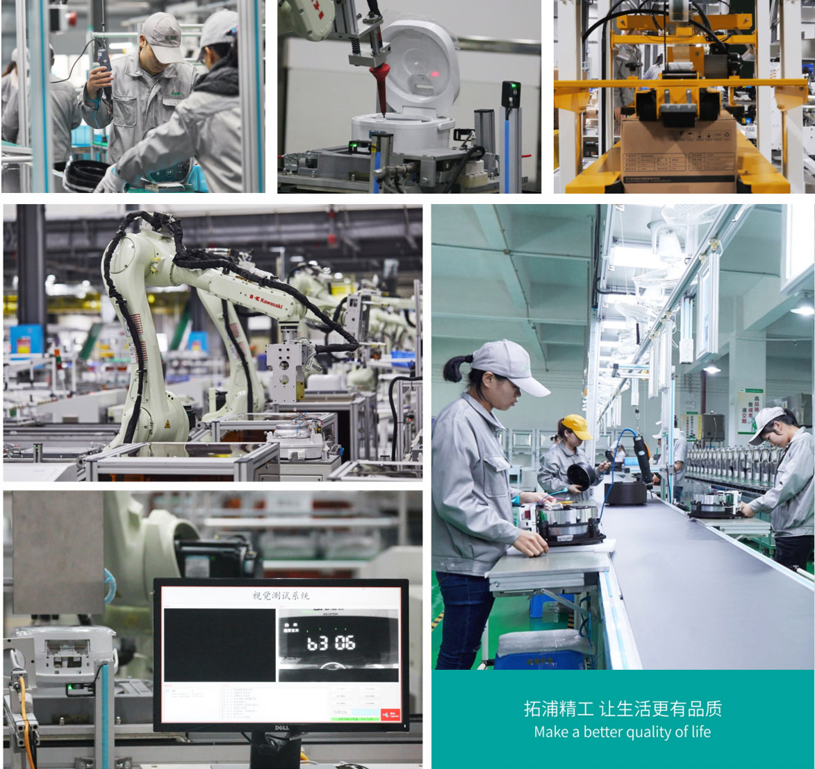 總裝車(chē)間配置有機(jī)器人全自動(dòng)生產(chǎn)線(由機(jī)器人、智能檢測(cè)、AGV物料自動(dòng)配送系統(tǒng)等組成)、智能板塊組裝線(帶自動(dòng)老化線、AG物料自動(dòng)配送)、部裝線、預(yù)裝線、包材配送線、部品輸送升降機(jī)、成品輸送線等,可滿足電飯煲、電壓力鍋、多用鍋、電磁爐、電水瓶、吸塵器、掃地機(jī)等家電產(chǎn)品的組裝、老化包裝等生產(chǎn)需求。