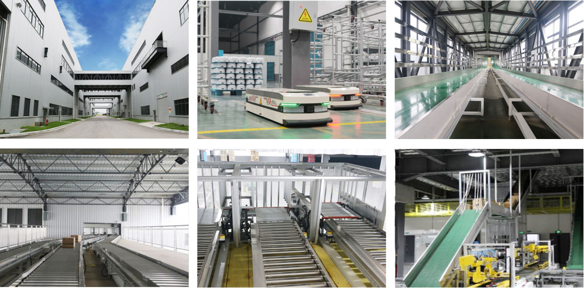 車(chē)間內(nèi)部采用一個(gè)流的生產(chǎn)模式,配備有全自動(dòng)部品輸送線,由連續(xù)式升降機(jī)和傳送帶組成,將配件、組件直接輸送到產(chǎn)線;全自動(dòng)包材輸送線,直接輸送包材從倉(cāng)庫(kù)到產(chǎn)線;全自動(dòng)成品輸送線,輸送成品至倉(cāng)庫(kù)進(jìn)行碼垛、打袋、纏膜、入庫(kù)等工序。