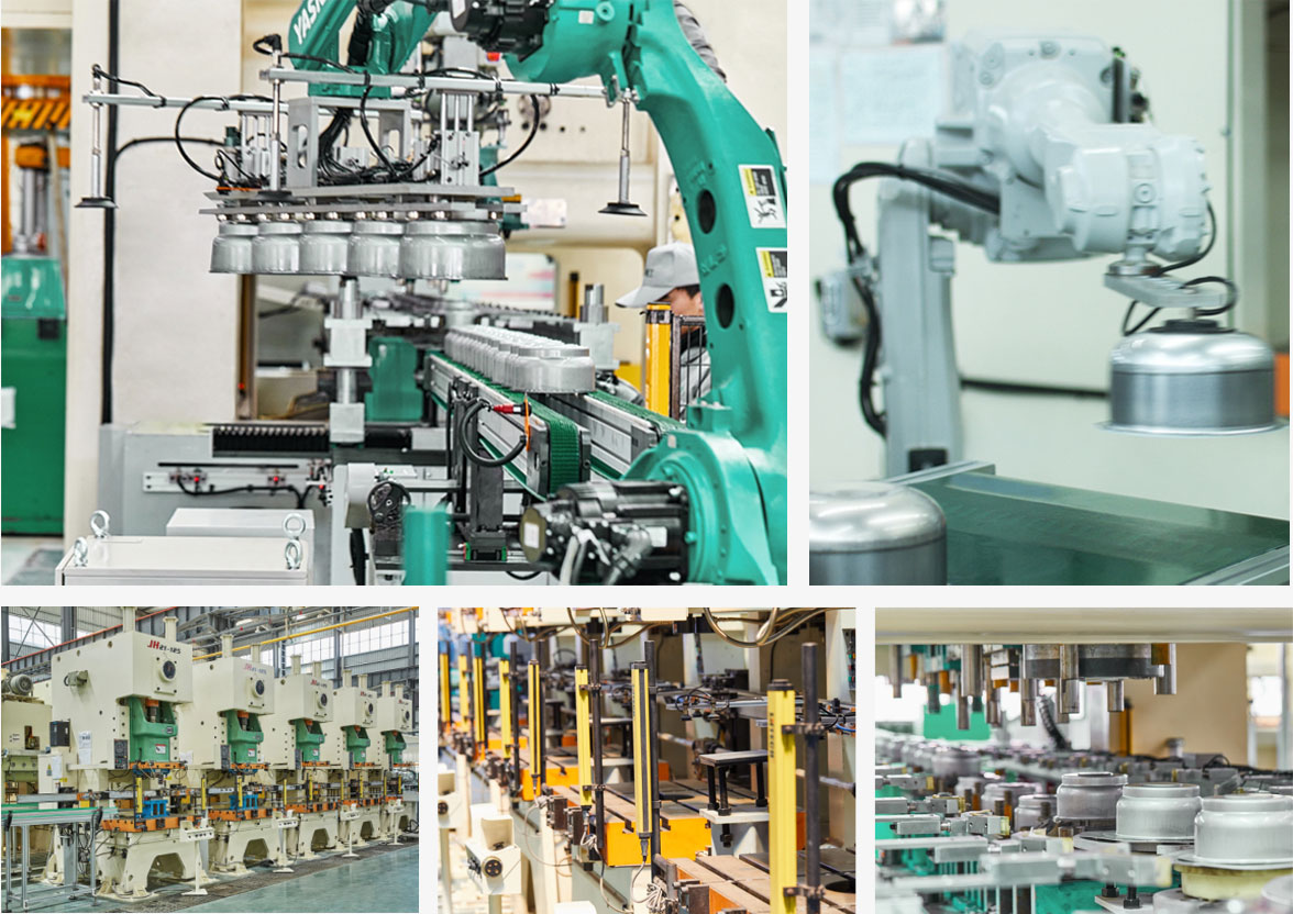 備有各類生產(chǎn)加工設(shè)備近300臺(tái),實(shí)現(xiàn)了MES智能派工、開(kāi)工、完工匯報(bào),SOP實(shí)時(shí)在線監(jiān)控設(shè)備、物料、品質(zhì)狀態(tài)。配置有:全自動(dòng)鍋蓋生產(chǎn)線(采用機(jī)器人、機(jī)械手和自動(dòng)砂光機(jī)組成),全自動(dòng)內(nèi)鍋生產(chǎn)線(采用機(jī)器人和機(jī)械手組成),全自動(dòng)外鍋生產(chǎn)線(采用多軸三次元加工設(shè)備),同時(shí)還配備有大量單點(diǎn)開(kāi)式?jīng)_床、大型龍門(mén)沖床和四柱六缸油壓機(jī),可以靈活機(jī)動(dòng)組成各種生產(chǎn)線。